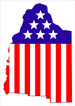Description: A map of Gilchrist made of stars and stripes bunting. Suitable for the following themes: Gilchrist government, politics, patriotic, elections. These maps are in the GIF format and have a white background. You can use them in your presentations, reports, and Web pages. There is also a link to a high-resolution TIFF version of the map if you need to print a very large, high-quality image. For any project such as a presentation or a web page that will be displayed on a computer, you should use the GIF versions displayed above, not the TIFF version.