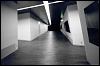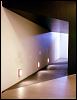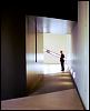 A museum visitor is confronted by one of the voids. A small slit window into the void is visible in this view.