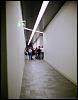 From the underground level, the main stairway ascends to the exhibition levels of the museum. Concrete supports loom over visitors' heads as they climb the stairs.