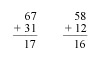 Digits are added from left to right. When the sum of a column is greater than 10, the "unit," or "one's" place-holder is carried to the column on the right. This error pattern reflects an inaccurate procedure (algorithm) and a lack of regard for place value.