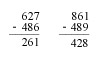 The smaller number is always subtracted from the larger number without regard to placement of the number (whether it is the upper number, the minuend, or lower number, the subtrahend, is irrelevant). This error pattern reflects an inaccurate procedure (algorithm). Additionally, the student may be using this procedure to avoid regrouping. This may indicate either misunderstanding of the importance of place value or a visual/motor deficit that makes the regrouping process difficult.