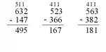 When regrouping is needed more than once, the correct value is not subtracted from the column borrowed from in the second regrouping (e.g. when the upper number in the tens an hundreds column are "borrowed from," the values of those upper numbers are not changed.)