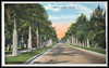 Cycle Path. Postcard showing a bicycle path in Florida. If you look in the distance on the path, you can see a bicycle. High School. Postcard showing a high school located in Gainesville, Florida. Madeira Beach. Postcard showing bathers in the winter surf at Madeira Beach in St. Petersburg, Florida. There is caption of the back about the beauty of the Florida winter. Short Street. Postcard of a street located in Miami, Florida. Caption from the back, dated December 8, 1913, reads, "I see in the papers that you are getting it fierce up North. Now don't you wish you were here in the brilliant sunshine with a temperature of 70?" Raised in Florida. Postcard of a young woman in a cart holding a bushel of oranges in an orange grove. Royal Palms. The caption from the back of the postcard gives a description of the beauty of Florida in winter. Beautiful Homes. Postcard showing a street of well kept homes located in St. Petersburg, Florida. Million Dollar Pier. Postcard of a night time view of the million dollar recreation pier, located in St. Petersburg, Florida.