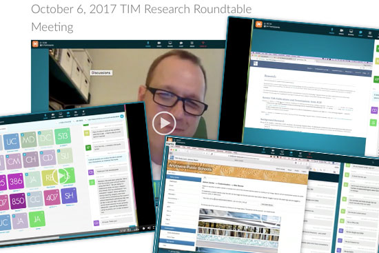 Join TIM staff and other TIM Tools users each month as we discuss research related to the Technology Integration Matrix and TIM Tools. The FCIT team shares details about our current studies and we invite all participants to share their research or evaluation progress, ask for feedback from the group, or share new resources. It’s a great opportunity to share a hour with your research peers in other districts.